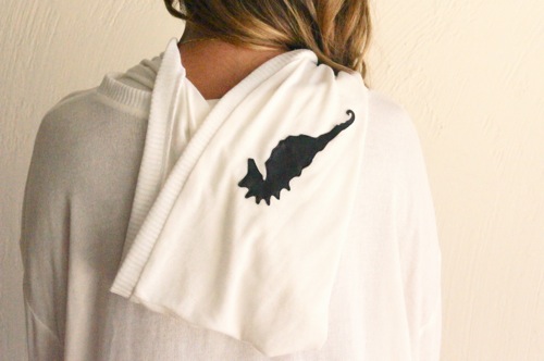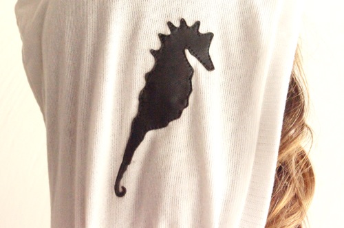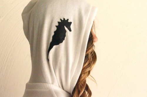 Our Famous Sweater with a hood and embroidered real leather seahorse on the front